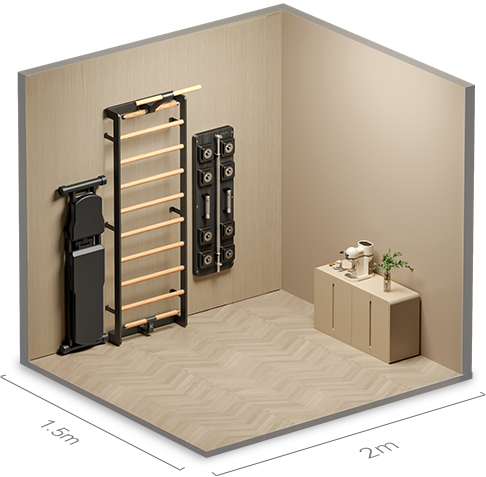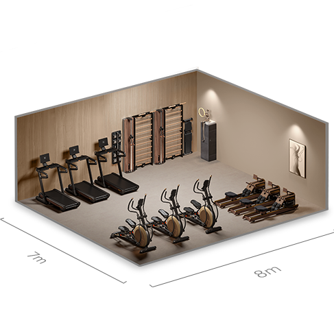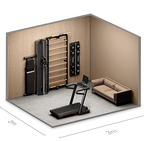 Фитнес-зал нового поколения, встроенный прямо в стену. Дизайнерское решение создаёт ощущение объёмного «гиперпространства» и превращает любое помещение в функциональную тренировочную зону.